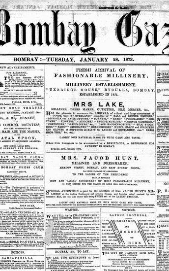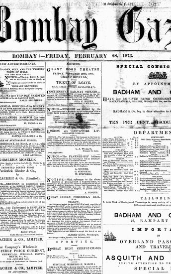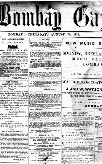 The Bombay Gazette, 28 October 1873
