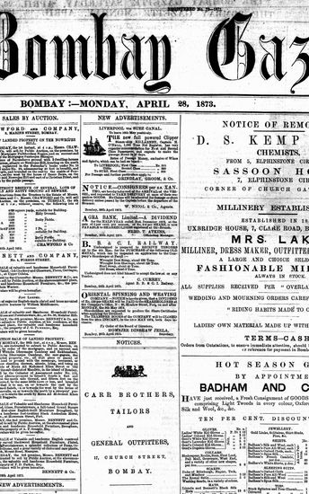The Bombay Gazette, 28 April 1873