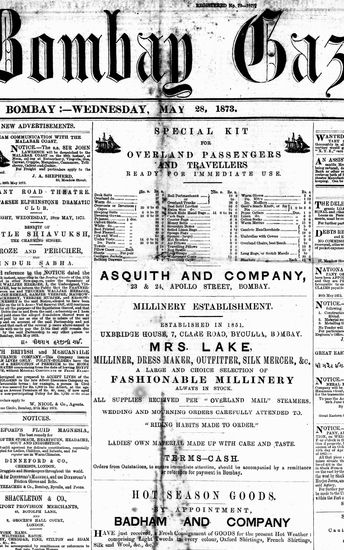 The Bombay Gazette, 28 May 1873