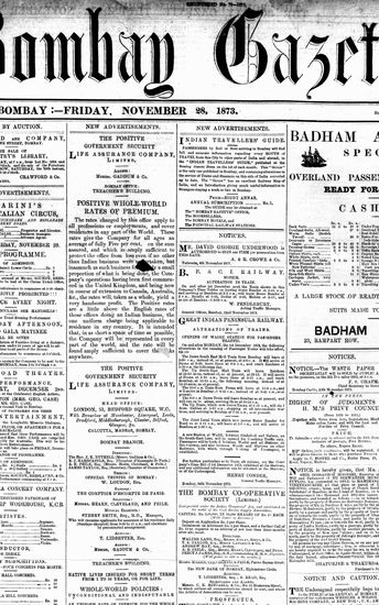 The Bombay Gazette, 28 November 1873