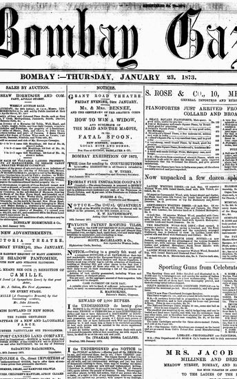 The Bombay Gazette, 23 January 1873