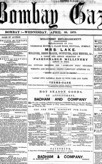 The Bombay Gazette, 23 April 1873