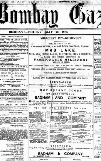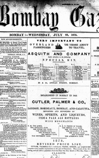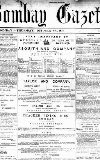 The Bombay Gazette, 23 October 1873
