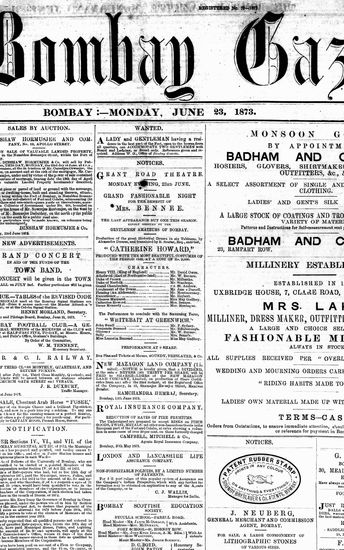 The Bombay Gazette, 23 June 1873