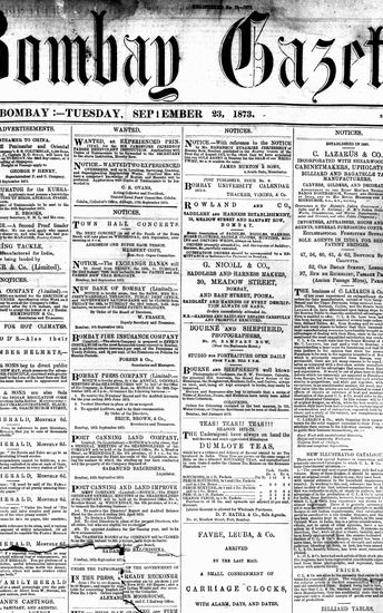 The Bombay Gazette, 23 September 1873