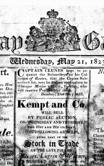 The Bombay Gazette, 7 May 1823