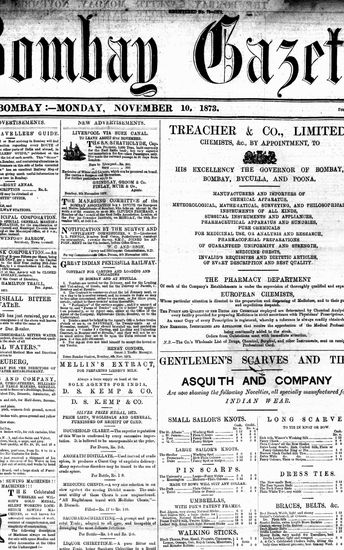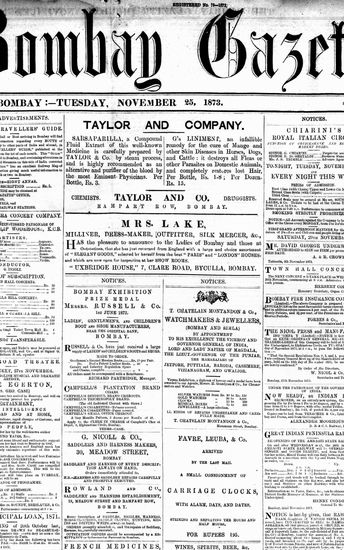 The Bombay Gazette, 19 November 1873
