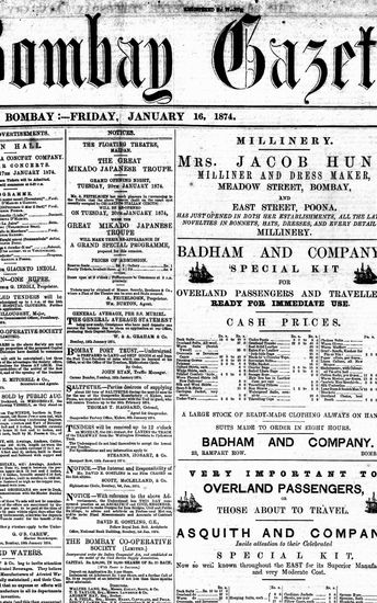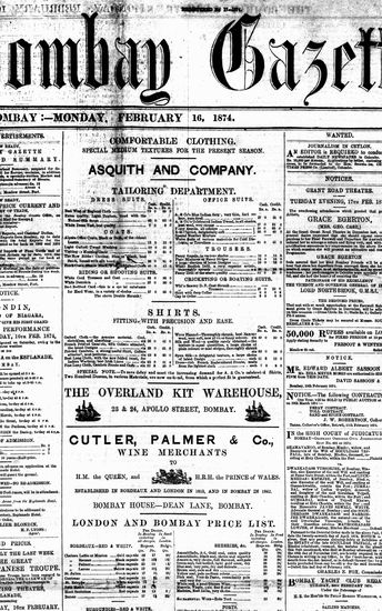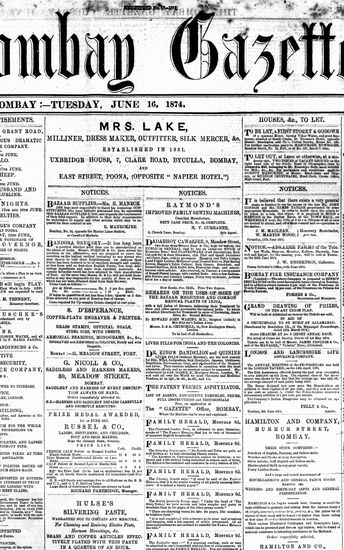 The Bombay Gazette, 16 October 1874