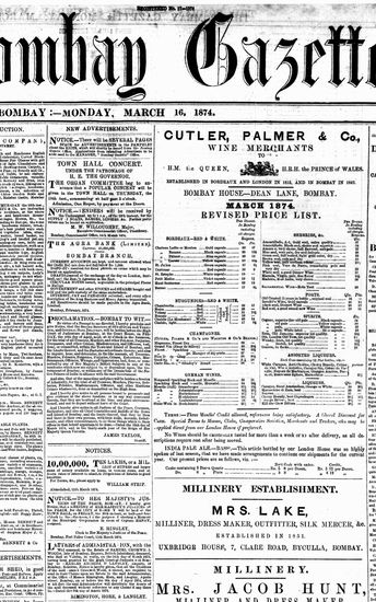 The Bombay Gazette, 16 September 1874