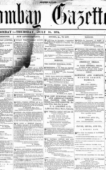 The Bombay Gazette, 16 July 1874