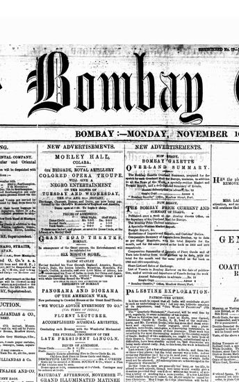 The Bombay Gazette, 16 November 1874