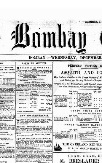 The Bombay Gazette, 16 December 1874