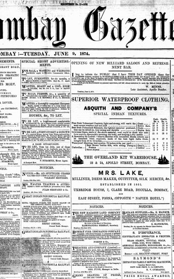 The Bombay Gazette, 9 June 1874