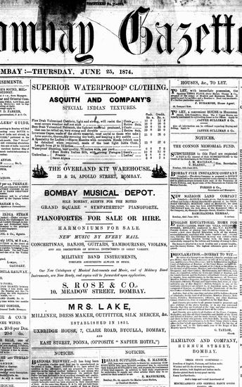 The Bombay Gazette, 27 June 1874