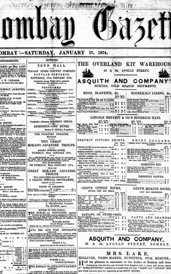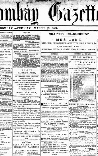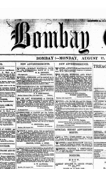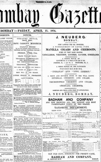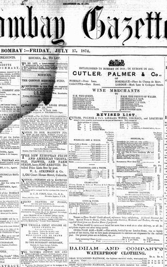 The Bombay Gazette, 17 October 1874