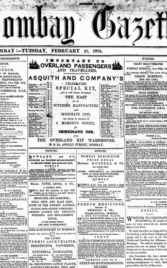 The Bombay Gazette, 17 February 1874