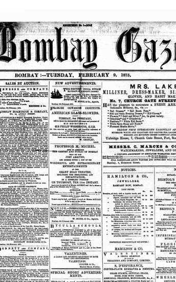 The Bombay Gazette, 9 March 1875
