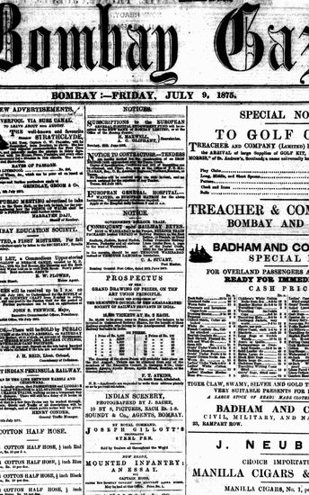 The Bombay Gazette, 9 July 1875