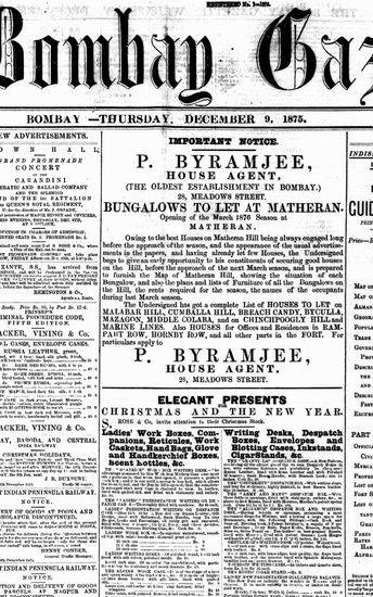 The Bombay Gazette, 9 December 1875