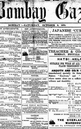 The Bombay Gazette, 2 October 1875