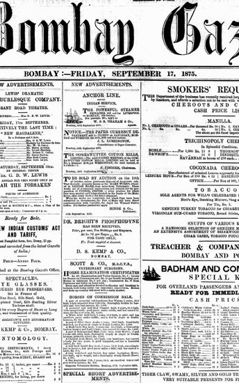 The Bombay Gazette, 17 September 1875