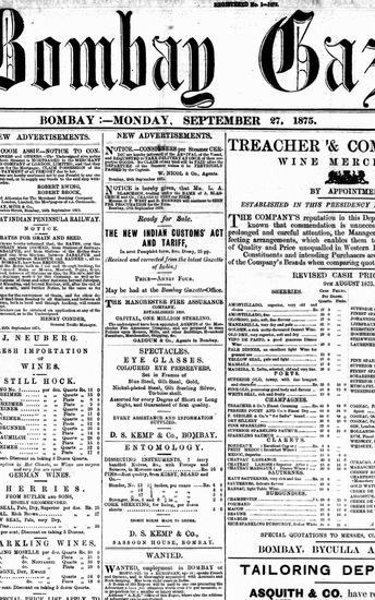 The Bombay Gazette, 27 September 1875