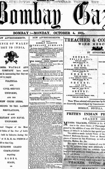 The Bombay Gazette, 4 October 1875