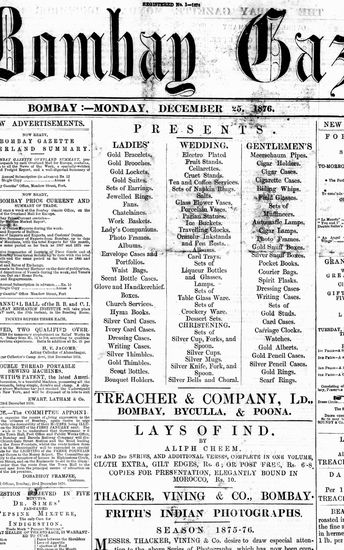 The Bombay Gazette, 24 December 1876