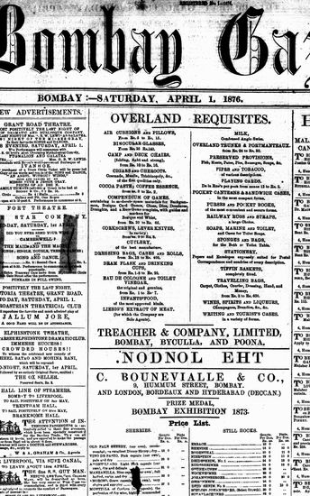 The Bombay Gazette, 1 April 1876