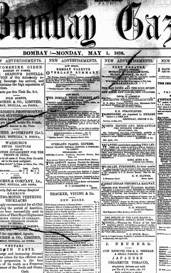 The Bombay Gazette, 1 May 1876