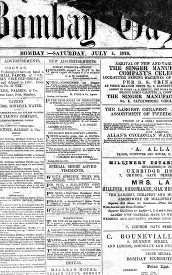 The Bombay Gazette, 1 July 1876