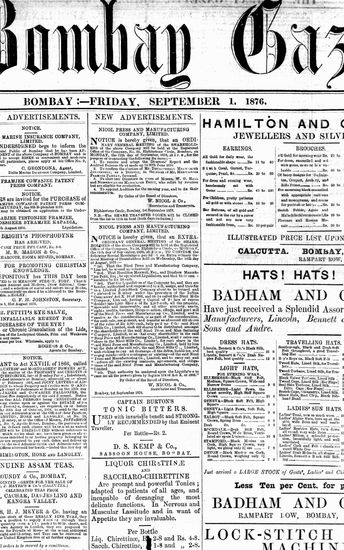 The Bombay Gazette, 1 September 1876