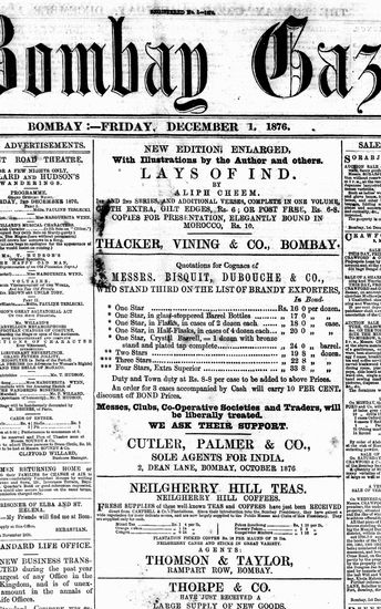 The Bombay Gazette, 1 December 1876
