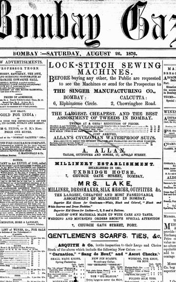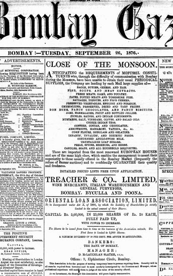 The Bombay Gazette, 26 September 1876