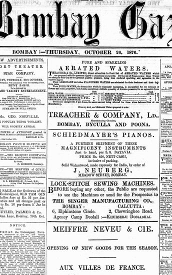 The Bombay Gazette, 26 October 1876