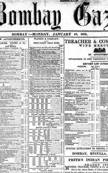 The Bombay Gazette, 10 January 1876