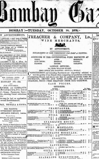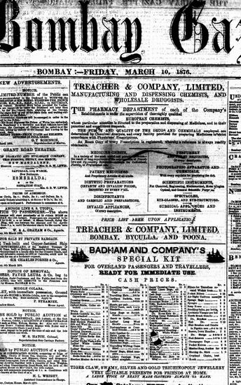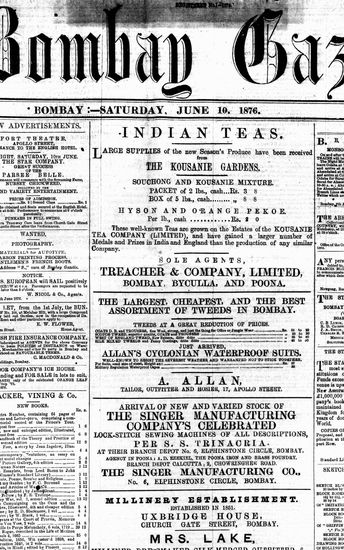 The Bombay Gazette, 10 October 1876