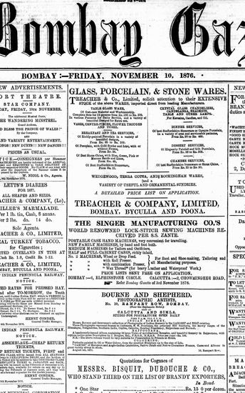 The Bombay Gazette, 10 November 1876