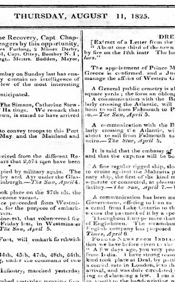 Bombay Courier, 11 August 1825