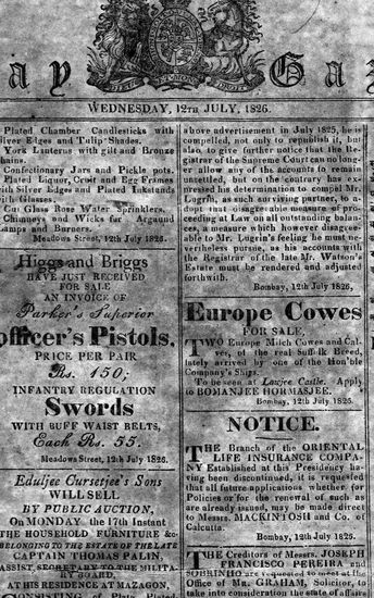 The Bombay Gazette, 12 July 1826