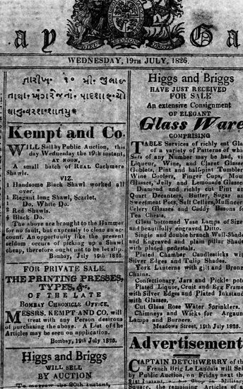 The Bombay Gazette, 19 July 1826