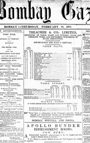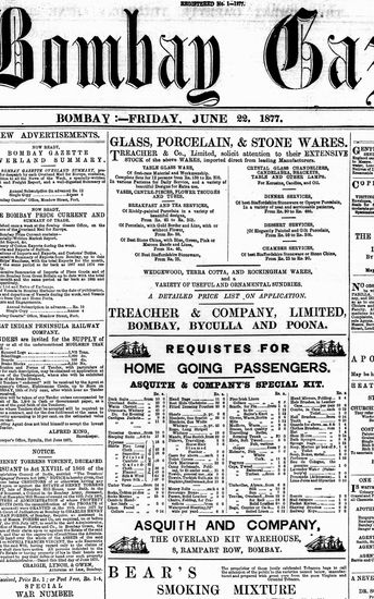 The Bombay Gazette, 22 October 1877
