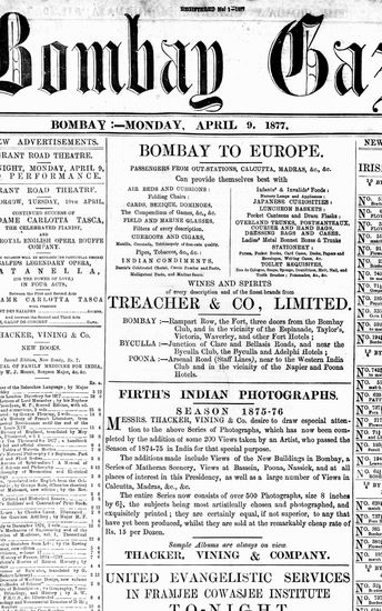 The Bombay Gazette, 9 April 1877