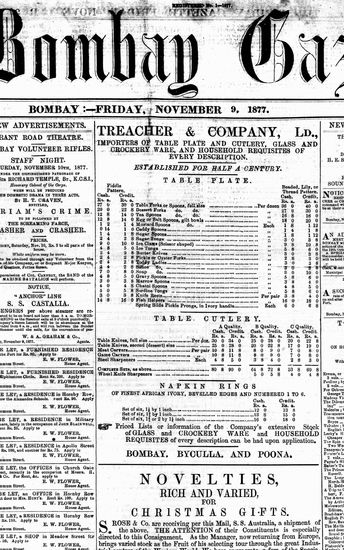 The Bombay Gazette, 9 November 1877