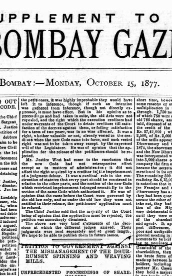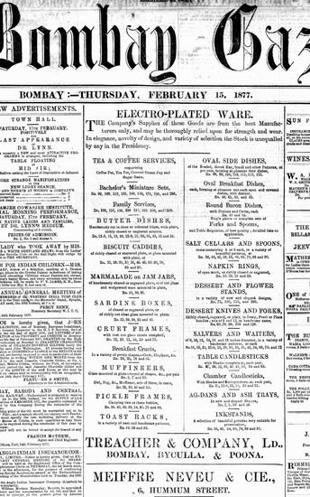 The Bombay Gazette, 15 October 1877
