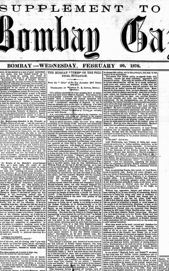 The Bombay Gazette, 6 November 1878