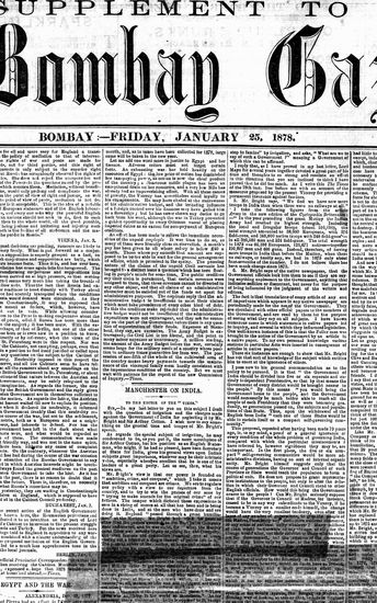 The Bombay Gazette, 25 January 1878