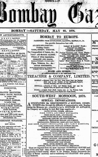 The Bombay Gazette, 25 May 1878