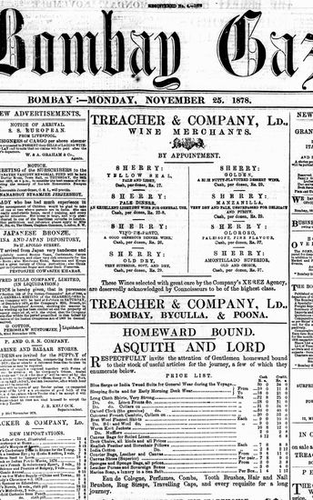 The Bombay Gazette, 25 November 1878