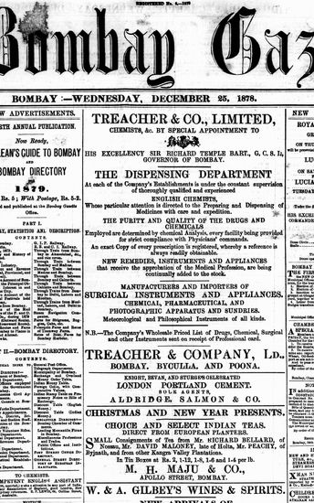 The Bombay Gazette, 25 December 1878